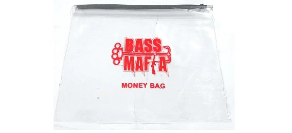 The Bass mafia Money Bag that is made from heavy duty vinyl, unable to be ripped or pulled apart. Locking system with zipper keeps the bag air tight and waterproof, perfect for protecting your favorite plastics or personal items from the elements.