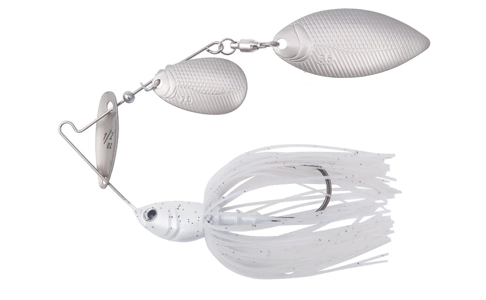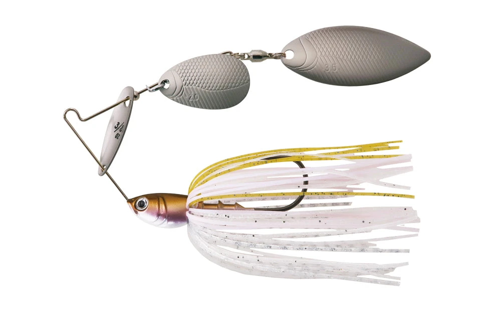 The Bottom Up Beeble is designed with a “Splitter” a blade split between the top and bottom wire to create a push of water like a scrounger’s head, creating a horizontal shaking. The rear blade rotates sharply even in slow retrieve and agitates water powerfully with a wide-angle of rotation. Demonstrates high fish collecting power and reaction effect. For the front blade, TW and DW each have a shape that firmly grasps water even if the splitter blocks the water receiver. A shape that prioritizes practicality while giving consideration to the reality of appearance. The pointed shape that connects smoothly from the arm without steps is good for pickpocketing. The cross-sectional shape has a teardrop shape that lowers the center of gravity and contributes to improved stability during high-speed retrieval. The swimming posture, which faces slightly above the horizontal, naturally imitates the appearance of small fish swimming, while the needle tip points diagonally upward, which is excellent in transmitting hooking power.