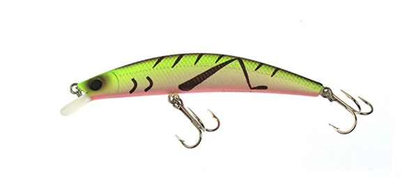 The Daiwa Dr. Minnow is a floating version of a classic hardbait with a long reputation for taking all manner of gamefish especially trout. With a thin body and a small bill, the bait dances on the retrieve and is a killer on the dead stick. At a smart price the Dr. Minnow is a very affordable yet highly effective jerkbait. Strikingly Realistic Detail and Color Patterns mimic many different forage items. The VMC 9650 hooks are stronger on the new model The Dr. Minnow is a versatile, effective, yet affordable jerkbait which will take welterweight gamefish of all kinds.