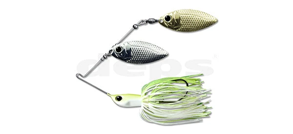 The DEPS B Custom Spinnerbait is the very first bait ever produced by DEPS, and has remained one of the most sought after spinnerbaits ever made. Every detail of this bait has a purpose, and this bait really set the stage for finely crafted bass fishing lures. The unique head design allow the B Custom to rock side to side, much more lifelike than standard spinnerbaits. It also allows the bait to fall horizontally, making this the best lift and fall double willow spinnerbaits ever. The custom wire is designed to flex at the optimum angle and tension for maximum hook setting power. The custom made blades are not only perfect for fluttering on a vertical drop, but they are set in place with proprietary hollow beading that allows extra vibration under the water, and the removal of the sleeve that is found on most other spinnerbaits allows greater casting distance and much less weed snagging.