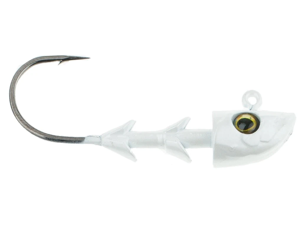 Realism and performance are what drove us to build FT Swimbait Head. Performance starts with the FT proprietary no-slip trailer holder which keeps your soft plastics practically locked to the premium Gamakatsu Jig Hook = Bass can no longer pull your bait down or off on short strikes! Each Gamakatsu hook is integrated into a super hard powder-coated jig head and a realistic baitfish design that will also stand up to the punishment any fish will unleash on them. Each jig features weights printed on the head. Available in multiple sizes and in premium non-toxic Zinc as well as lead options. 3 per Pack