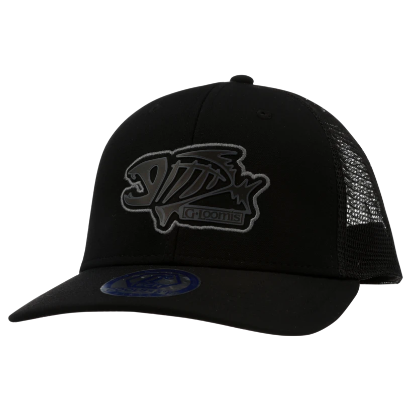 The iconic Gloomis skeleton fish logo is combined with the original block logo on a micro-suede patch featured at the front center of this 6-Panel trucker hat. Water-resistant stretch fabric on the front panels as well as a cooling sweatband combine to make this hat comfortable and ideal for fishing.