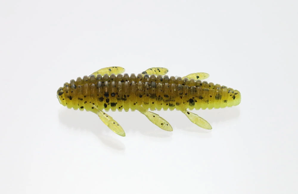 A simple and explosive worm. The high density material and streamlined body provide an amazing flight distance. Set the offset hook from the thin side of the body. With no sinker, you will fall horizontally while moving your legs. If you attach the nail sinker to the thicker side of the body, it will be a back slide setting.