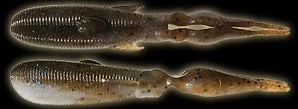 The Kasumi Design Hyper Omata is a dense soft plastic witha bulbous heavy weighted body capable of sinking to the bottom without assistance. Rig if weedless and bounce it among rocks and sand or rip it to the surface and let it flutter back down. Its long slender body makes it very versatile for any technique and the compact size makes it a perfect trailer on any jig, chatter bait, and more!