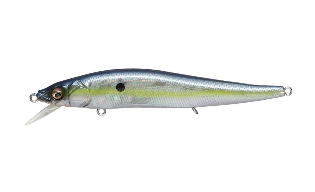 The Megabass 110 FX Tour premium jerkbait is a unique “flap-bill” jerkbait modeled after the original Ito Vision 110. The bill of the OneTen FX folds in on the cast to allow for less air resistance and farther casts, giving anglers the ability to throw farther to wary fish. The bill flips down upon jerking the bait, and adjusts it’s length based on line pressure, causing the bait to create erratic trick actions. The OneTen FX Tour jerkbait is also a true suspending jerkbait. This is must have addition to any jerkbait anglers arsenal.
