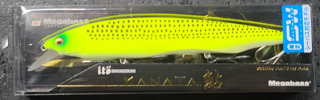 The Megabass Kanata Ayu is a large profiled, attention-grabbing jerkbait built with tuned flat sides and streamlined body to produce an intense flash while moving with minimal resistance through the water column. Jerk the rod sharply to create a energetic darting retrieve that displaces water as it kicks from side to side. Give it a pause, and watch its head lift as the body floats upward giving it a unique stop-and-go motion. Available in an assortment of hand-painted colors.