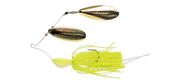 The V-FLAT POWER BOMB is a spinner bait made to be compact and heavy. Despite having a small profile, the weight surpasses that of the 1/2 ounce class. With its glamorous flat head, it has a long casting distance like a jig, and great slow rolling performance like large spinner baits. It’s perfect for covering marshy bottoms, shallows, rivers, and has the power to get a reaction out of the most cunning of prey. The POWER BOMB uses CHIDORI SPIN BLADEs, with the shape of the rear blade adjusted to create irregular movements, getting bites from even the most wary big fish.