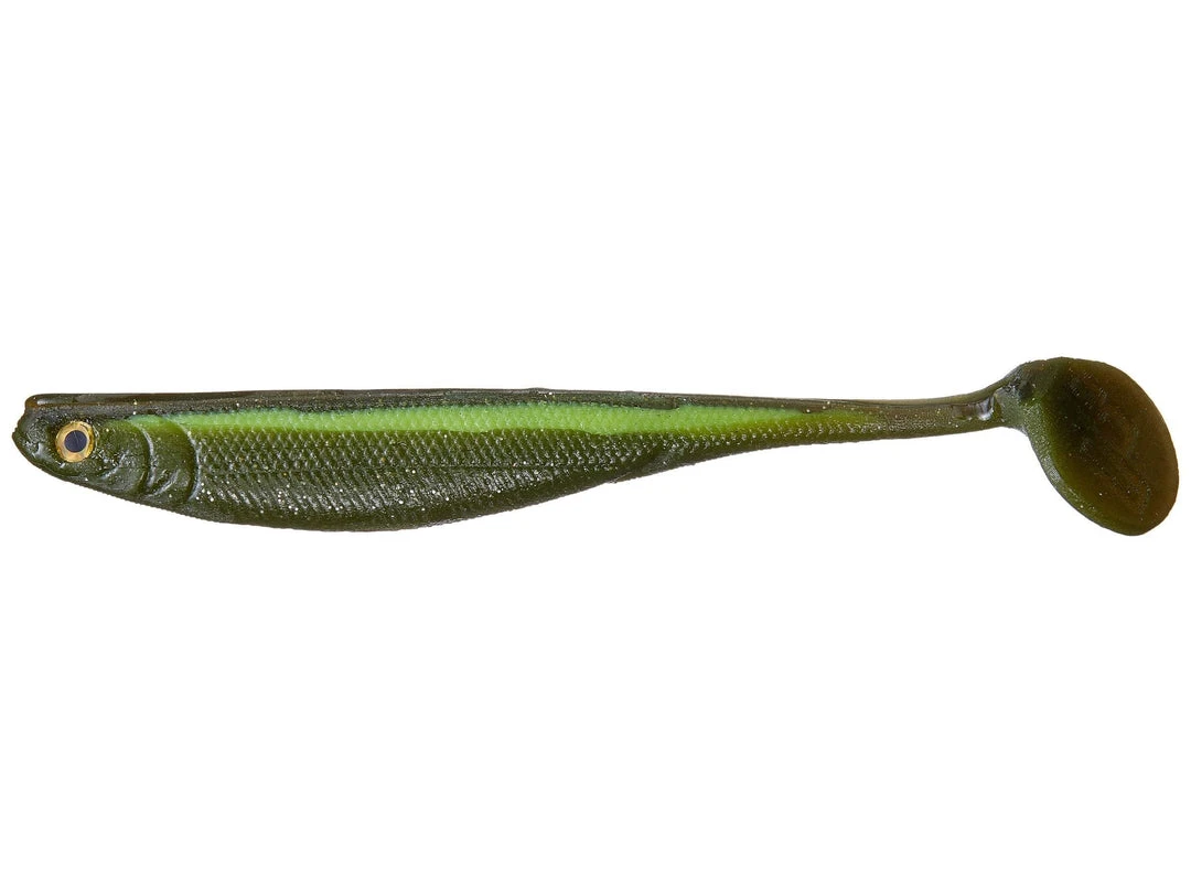What separates the innovative Opti Shad from other soft swim baits is a minor expansion located in the middle of the lure. Unlike traditional shad tail style artificials the deepest part of the Opti Shad body is also the widest part of its body. This key formula ensures superior hydrodynamic performance in a multitude of applications as well as fluctuating retrieval speeds. As water flows past the lures sides the slight center bulge encourages an attractive body roll and at the same time water is directed down the tapered back to the tail causing a rhythmic kicking motion even when retrieved extra slowly. United, these naturalized actions perfectly capture the frantic and irregular behavior of a baitfish in distress.