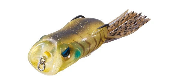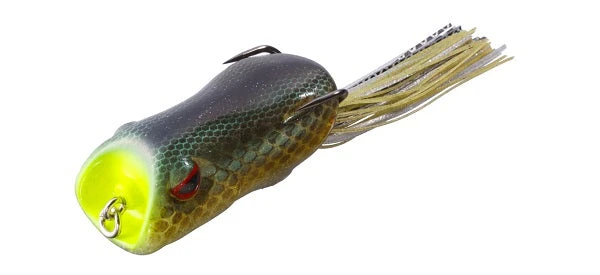 The OSP Diving Frog is an all in one frog designed to fish in both heavy cover and in light grass or open water. The amazing design of its cupped mouth allows the bait to pop and walk along the surface, or dive and crank subsurface. For example, at a spot with a short strike zone, increase attractiveness by giving it a bit of a pop along the surface. Need to cover more ground, walk the dog creates a large splash. Bass not coming to the surface, crank the frog down to trigger a bite- the possibilities are endless.