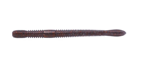The Dolive Crawler is the best balance of shape, material, and weight to generate a lively crawling action that makes the whole body wave with minimal rod action. The Dolive Crawler has a harder material and specific gravity (salt content) that starts to move with light weight like a real creature. By mixing the real shrimp and squid powder, its smell and taste prompt the bass to bite. The semi-ring body seizes water with its whole body that endows straight worm power to push water and generates flexible action. The voluminous head of this worm makes it easy to set nail weight and prevent it from falling off. Thick and flat tail increases powerful shimmy action and pushes water to appeal to bass.