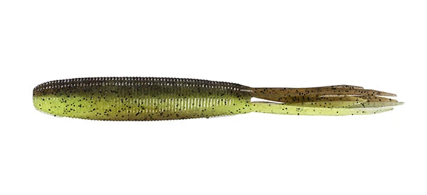 The OSP Dolive Shot has inherited the basic performance of the Dolive Stick, but designed to focus on the “backslide” which can fish any kind of cover effectively and quickly. More than just a “tube bait” the Dolive Shot is capable of being rigged two weedless ways- the first the weightless back slide setting generates voluntary action with body rolling and waving eight hula skirts right and left; the second the weightless normal version that generates voluntary action waving hula skirts right and left. When you twitch it quickly, voluminous hula skirts wave and they appear to be the kick of tail fin of baitfish. By inserting a nail sinker into the nail hole under the body, not only castability but snagless ability is improved.