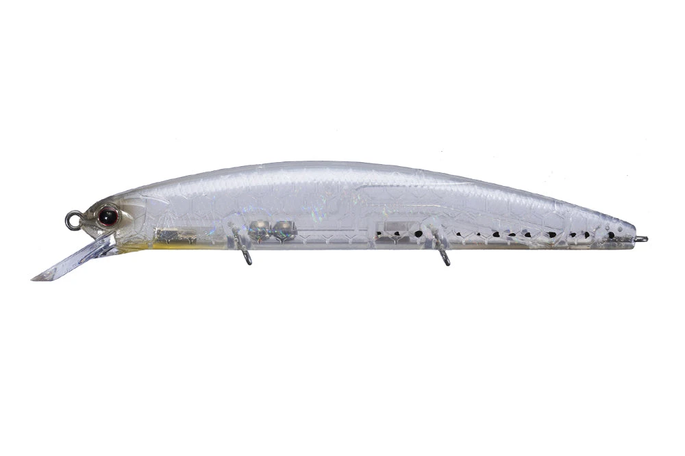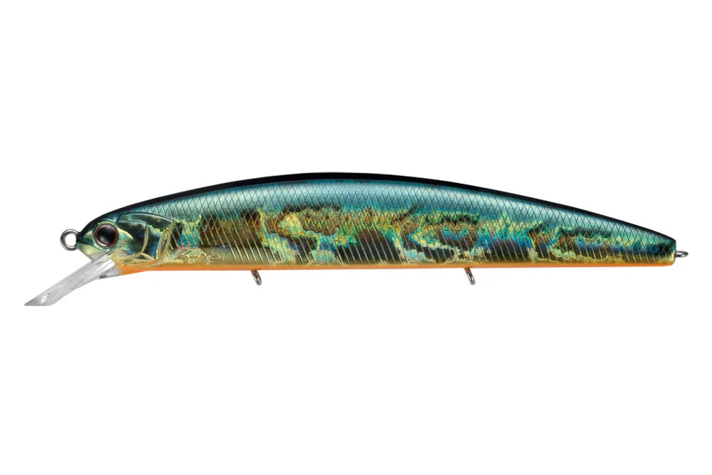 The Varuna 110F is a flat side concept minnow that creates more flashing effect and water drive than round body minnow. The small-diameter triple tungsten center of gravity movement allows the weight to reach near the tail, achieving accuracy and long cast performance with a stable flight attitude. This also contributes to the unique sound and lowering of the center of gravity of the weight, and by fusing with the Honeycomb Super HP body (PAT.), Which is both lightweight and strong, it has a high response and a good start and go action, even on a straight retrieve.