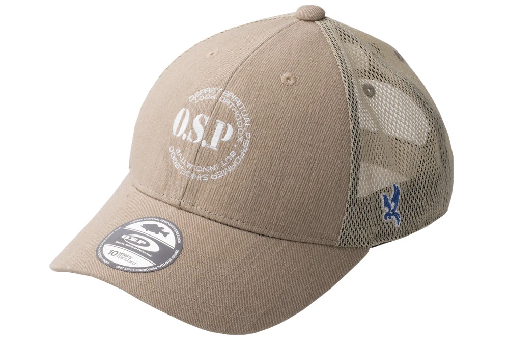 A middle-fit type cap that has been well received by many anglers as “it is easy to wear with an exquisite depth” and “it does not hurt your ears even if you wear sunglasses”.ย The new model has a circle logo embroidered on the front, and the coloring is light denim, charcoal gray, beige, making it easy to wear in the field or in the city.ย The mesh part uses a double woven mesh fabric, giving it a luxurious finish.ย Functionality on the actual fishing surface is also included, and the back side of the brim uses black fabric to suppress diffused reflection of light, which is the commitment of OSP.ย The inner Fuse tape is also original, with an original sticker on the brim and an original name on the back belt.