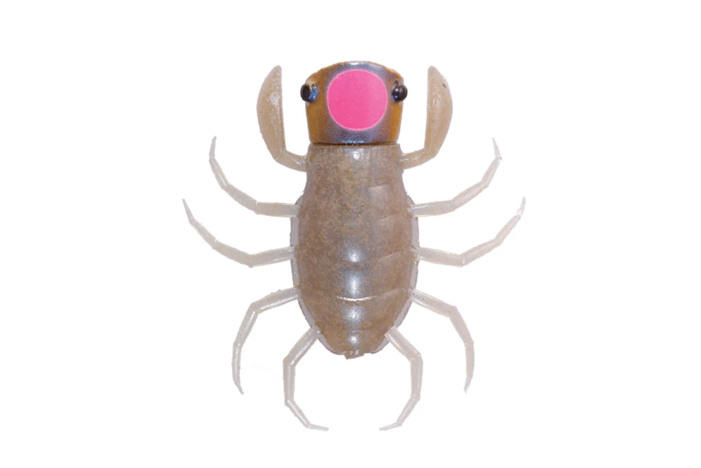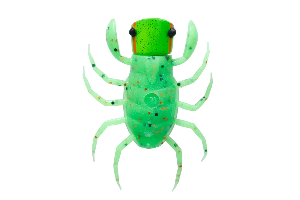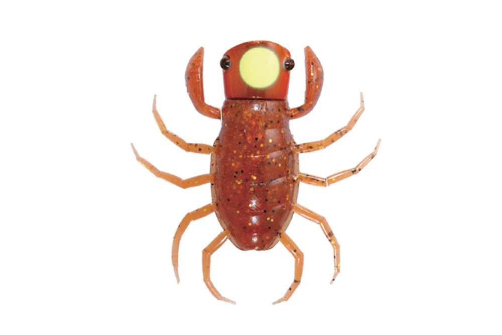 Sweet pop sound and splash generated by cup-shaped head elicits bass from deep range or far back in cover where small silhouette bug lure was never able to show its existence. Upward arms make on-the-spot temptation easy and reproduce drowning bug. The four pairs of legs float on the water surface, and generate a complex ripples even by a slight shaking. 2 brush guards are the result of consideration of heavy cover fishing and it is arranged straight vertical so when you cut one of them it still guards the centerline of the hook. Downward line eye and hook has the best hooking ability. That’s Orikane’s conclusion after he tested every kind of hooking pattern. It demonstrates amazing power under high pressure condition or against visible bass. It is not limited to the field where bug is the main bait.