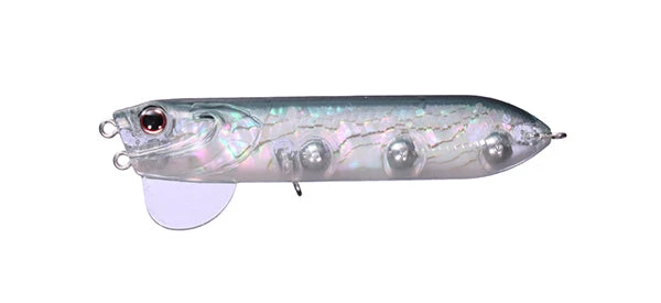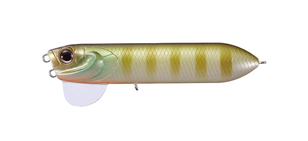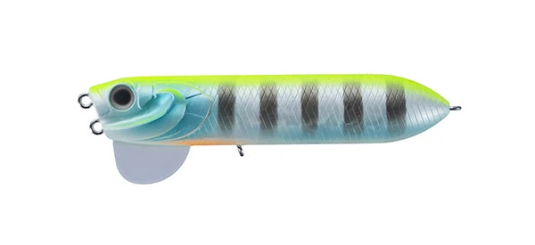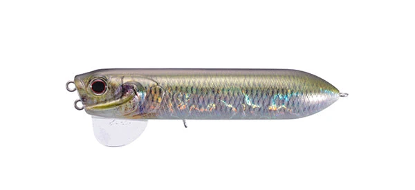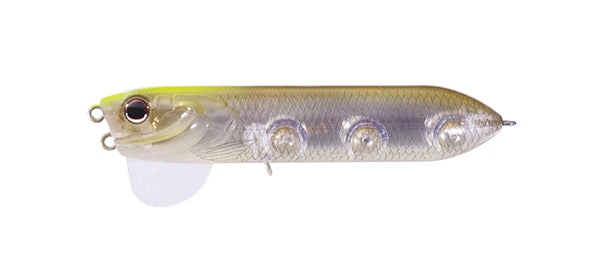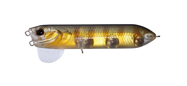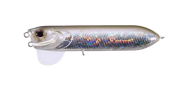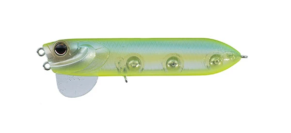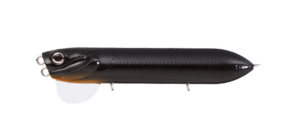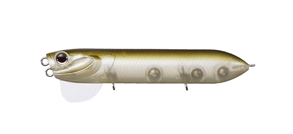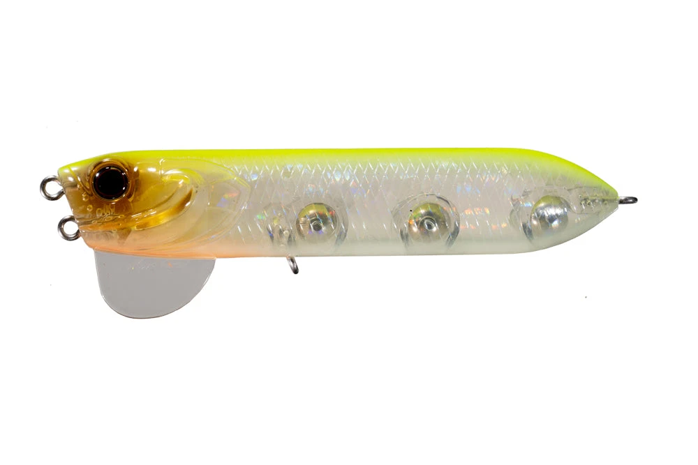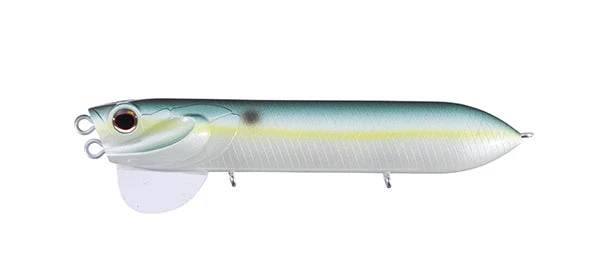 OSP has reverse-engineered the pencil popper to establish a new genre of surface multi-action baits: the Yamato. Normal pencil poppers have one cup on the front of the bait to establish its action- the Yamato took it the next step and equipped cups on both sides of the lure’s head and the bottom was designed to push out like a lip. One: a walk the dog action churns more water and increases splash while the centerboard below the head controls the current like a rudder and allows the bait to perform wide turns with stability. Two: line ties allow for two different actions: tying to the higher eye creates a peculiar pop sound and dome splash while tying to the bottom eye causes the bait to dive subsurface for a wake bait appeal on a straight retrieve or walk-the-dog action.