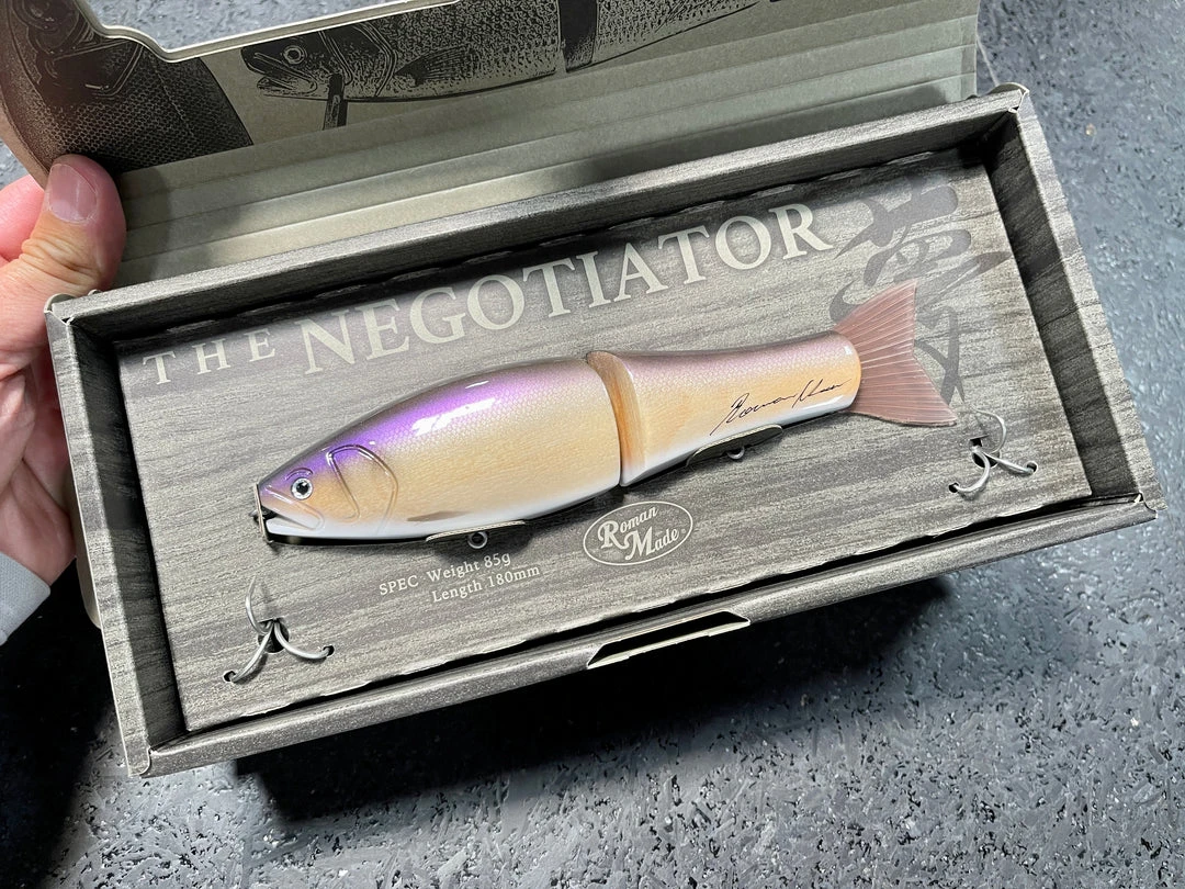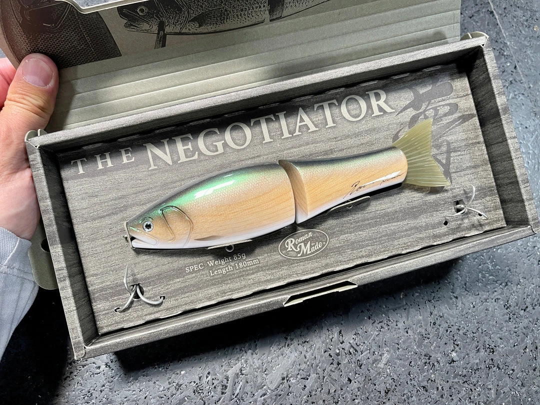 The Roman Made Negotiator is one of the most sought after glide baits in Japan. Hand carved and Hand tuned, the wooden Negotiator has a beautiful and responsive S Gide under the water, and give anglers a great mid-sized option for Glide Baits.