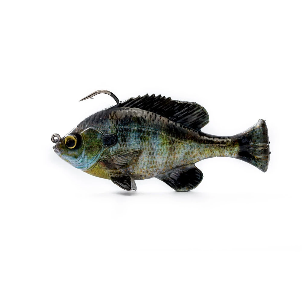 Molded from a 3D print of a live bluegill, the Savage Gear Pulse Tail RTF Bluegill is the peak of realism. RTF stands for Ready to Fish, and the bait is equipped with a heavy duty and lead harness, as well as an integrated foam rattle chamber.