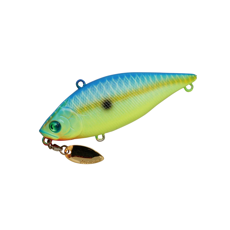 The Valley Hill LV500GP is a hybrid lipless crank that features a bladed lip to keep the bait lower in the water colum and in the strike zone longer. Due to the vibration of the body, the rotating blade sways irregularly, achieving a higher flashing effect. With a high-speed retrieve with a moderate pitch, the resistance to swim is lost to the rotation resistance of the blade, creating a moment when the lure pauses, creating a trigger for bass to strike. The high frequency rattling sound increases its appeal to even the pickiest of bass.