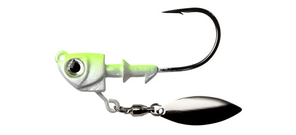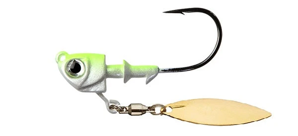 Warbaits are made for big fish! The Underspin is designed with a unique shape head for drilling through the water while stainless willow blade flutters underneath, creating a combination of detail and flash as soon as it hits the water. A Mustad Ultrapoint heavy gauge hook allows for easy hooksets while collared keeper prevents you from loosing your trailer. 3D Bubble eyes and baitfish colors, bring a true to life appeal to the lure. Available in a variety of sizes and colors.