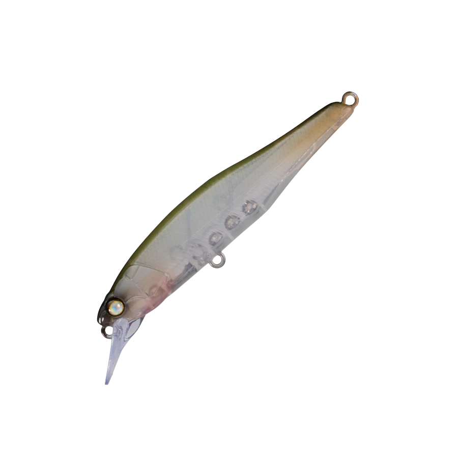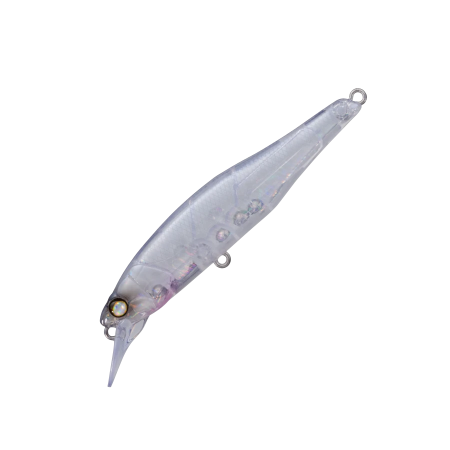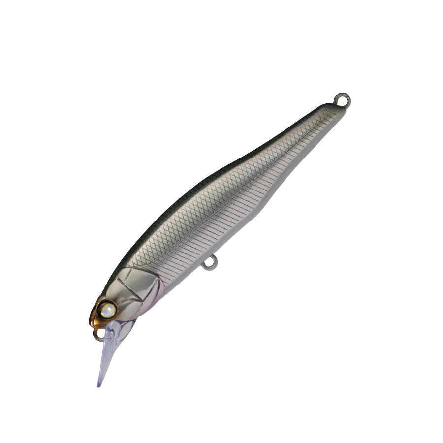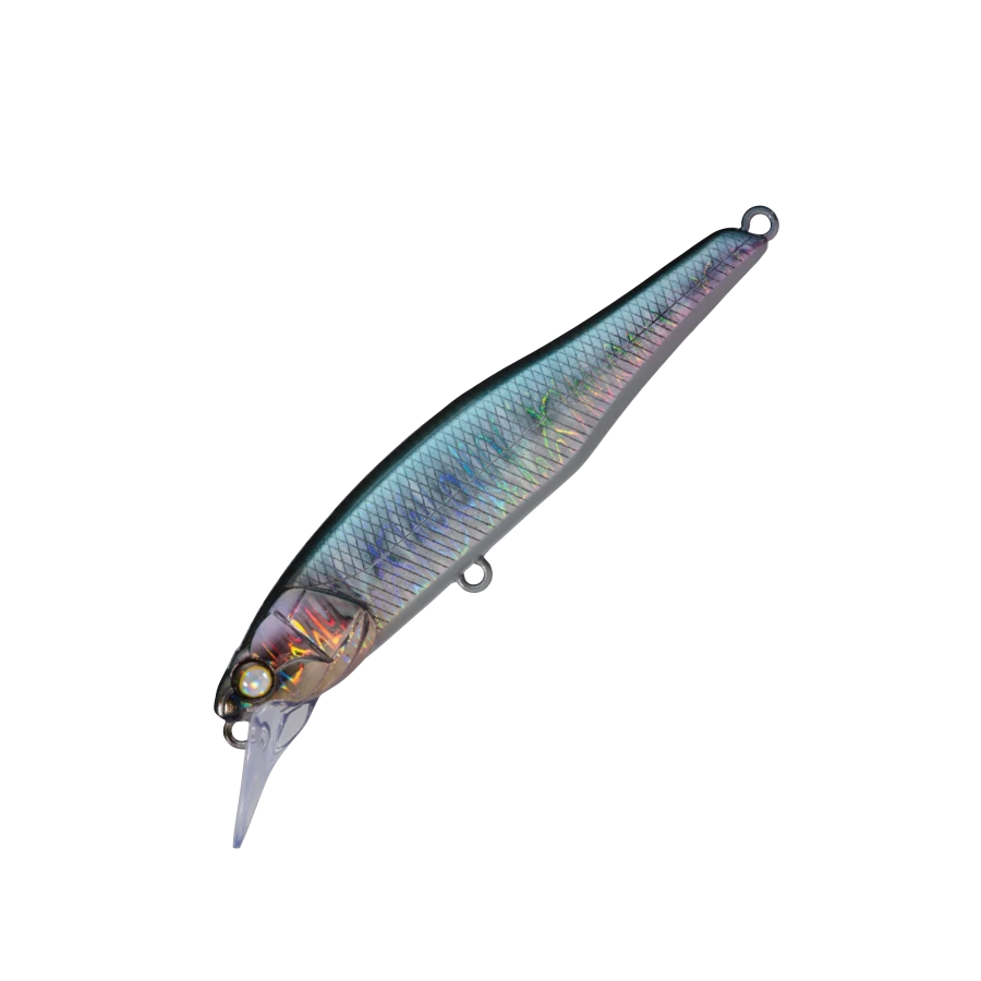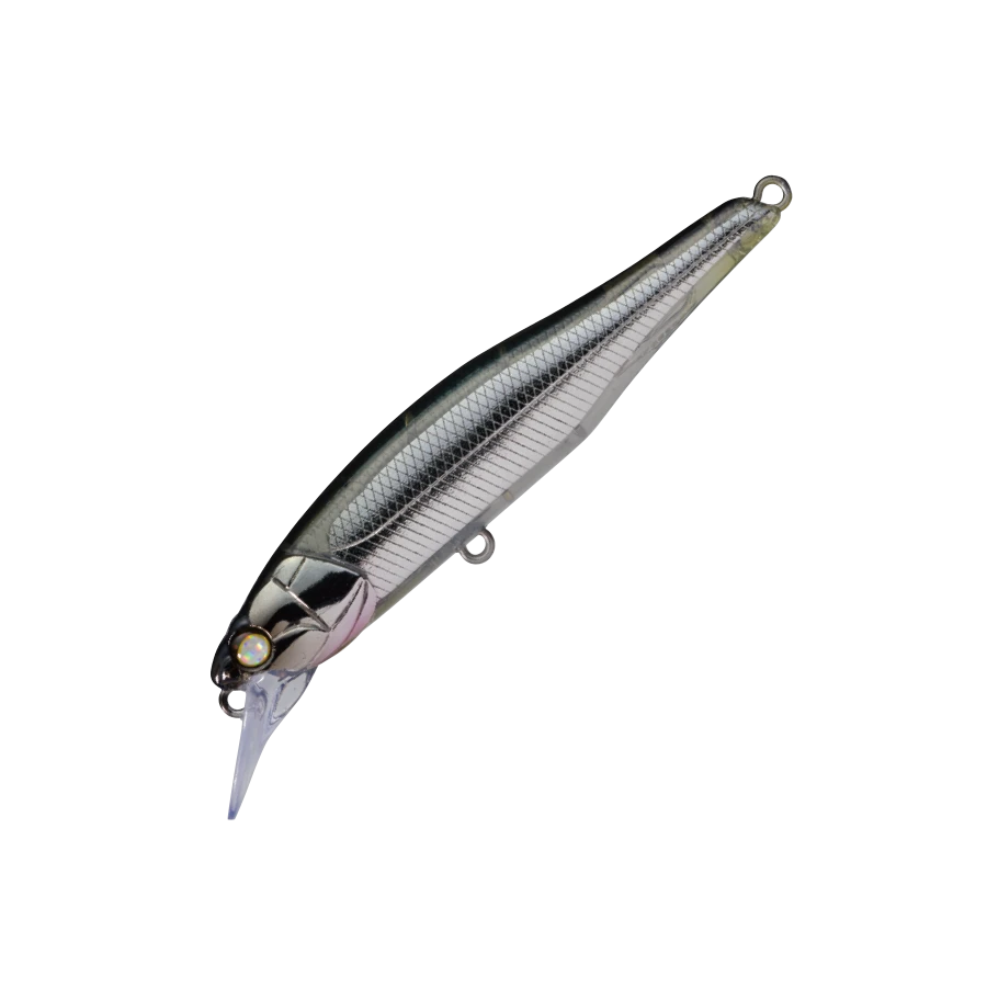 WHIPLASH’s first minnow is based on the concept of “steady for retrieve, acrobatic for jerk”, and after careful manual adjustment and repeated tests, it took shape. In the slow retrieve, a steady swim of a tight rolling system with clear blinking with a little wobble, and in the high speed range, the wobble increases but the straight running stability is maintained. Surprisingly, it can withstand running water. For jerk, a dart that flashes out with vertical input. With a fine twitch, you can ignite the predatory instinct of the fish eater by developing a twisting flutter and a writhing that makes the body look bent. Assuming a strong target, the body thickness is usually plus 10% to 1.1mm. In addition, each eye has also been strengthened and enlarged to accommodate split rings that are slightly larger than the standard. Versatile minnows can only be used for various purposes and for various target fish. TBR aimed for that very versatile. It is an ideal image of a “universal lure” that Minnow should be.